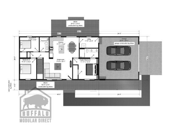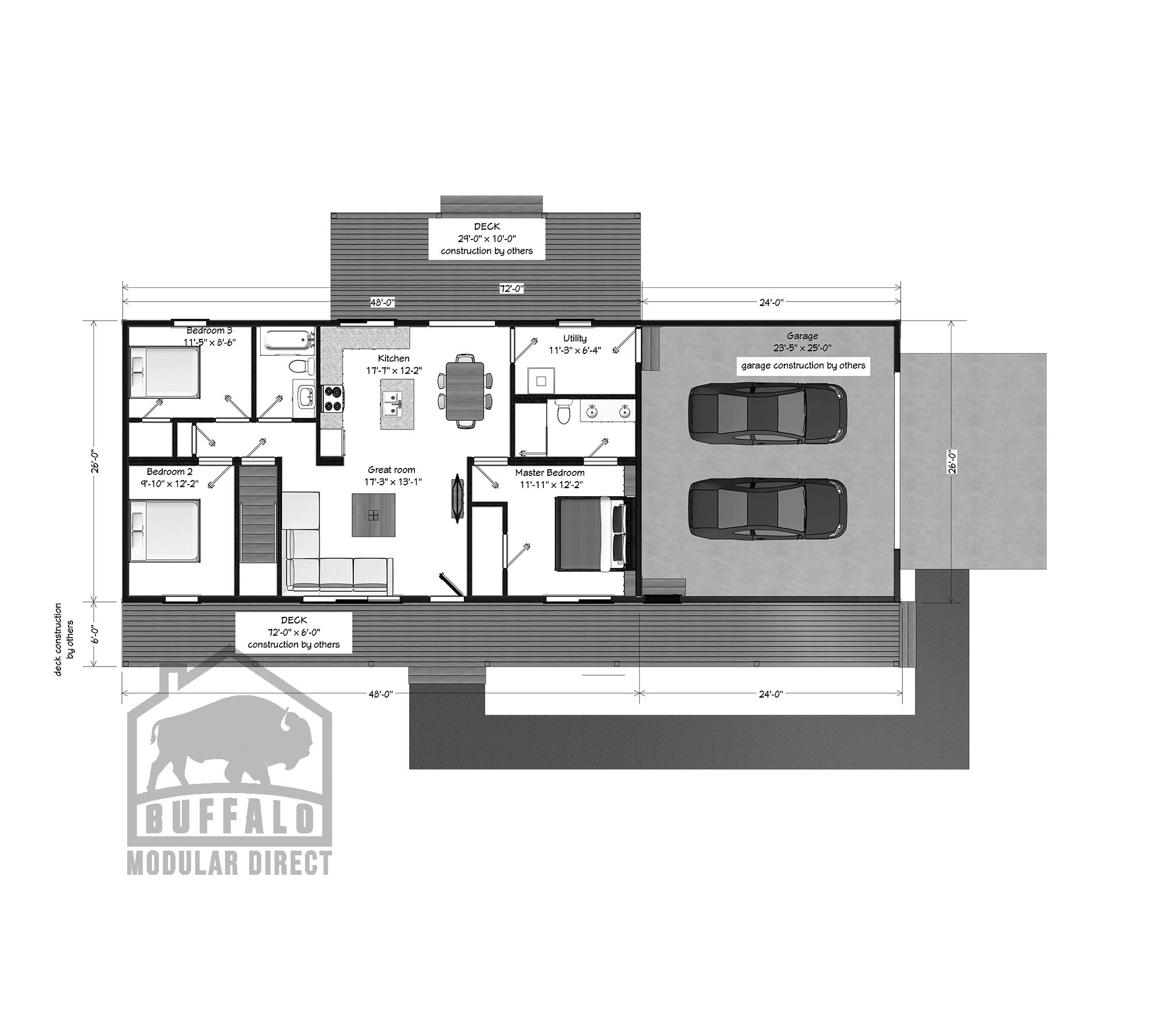 Contact Buffalo Modular today. Learn more about our Prefab Barndominium 3100. Let’s build your perfect home together!